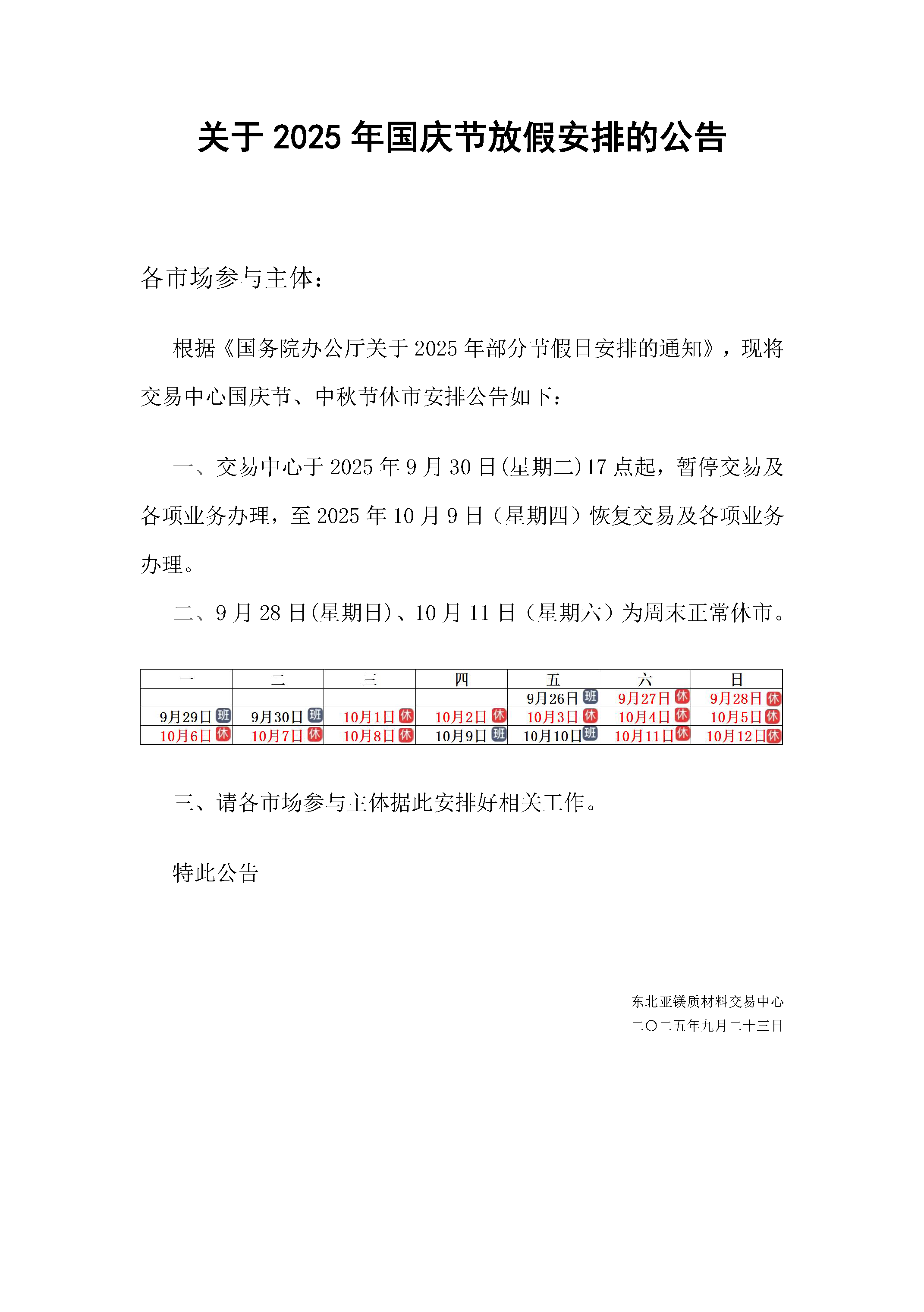 關于國慶節(jié)放假安排的通知
