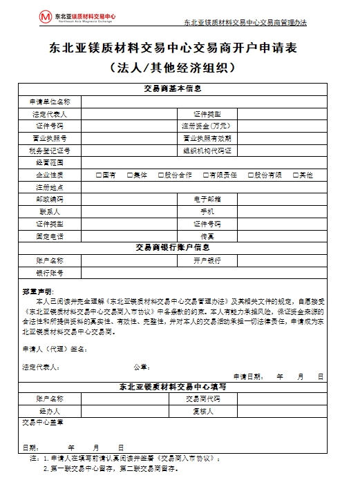 東北亞鎂質(zhì)材料交易中心交易商管理辦法