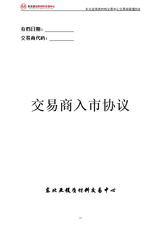 (四)按照《東北亞鎂質(zhì)材料交易中心入市協(xié)議》的規(guī)定向交易中心繳納相關(guān)費用;